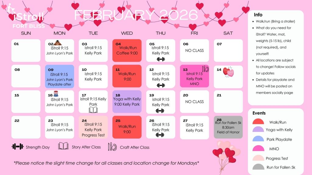 Please check Facebook (iStroll Fort Bliss) or Instagram (istroll.fortbliss) for the most recent schedule or location changes.